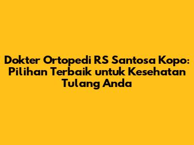 Hey, guys! Pernahkah kalian merasakan nyeri tulang yang mengganggu aktivitas sehari-hari? Atau mungkin khawatir tentang kesehatan tulang buah hati kalian? Jika iya, RS Santosa Kopo punya solusi jitu buat kalian. Kita akan membahas tuntas tentang dokter ortopedi di rumah sakit ini, yang siap membantu kalian mengatasi berbagai masalah tulang dan sendi. Nggak perlu bingung lagi deh nyari tempat yang pas, karena RS Santosa Kopo ini punya tim ortopedi yang udah nggak diragukan lagi kemampuannya. Dari konsultasi awal sampai penanganan lanjutan, mereka siap mendampingi. Yuk, kita bedah lebih dalam kenapa dokter ortopedi RS Santosa Kopo ini patut jadi pilihan utama kalian.