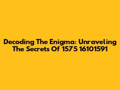 Decoding The Enigma: Unraveling The Secrets Of 1575 16101591