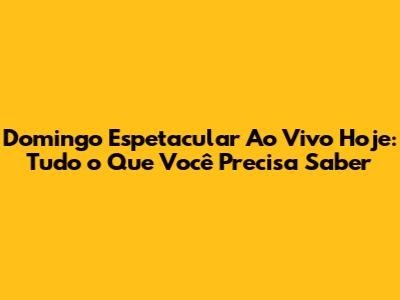 Domingo Espetacular ao vivo hoje promete! Com certeza, a edição de hoje será imperdível, trazendo reportagens investigativas, entrevistas exclusivas e quadros que vão te prender na frente da TV. Prepare-se para se emocionar, se informar e se divertir com mais um programa repleto de conteúdo de qualidade. O Domingo Espetacular é um dos programas mais importantes da televisão brasileira, sempre trazendo informações relevantes e entretenimento de qualidade para os telespectadores. A cada domingo, a equipe se dedica a apresentar um programa completo, que agrada a diferentes tipos de público. Se você é fã do programa, não perca a oportunidade de acompanhar mais uma edição. Prepare a pipoca, convide a galera e aproveite cada momento. O Domingo Espetacular é a escolha certa para o seu domingo! E para ficar por dentro de tudo, acompanhe as notícias no site da Record TV e nas redes sociais do programa. Não perca as reportagens, entrevistas e quadros que vão agitar o Brasil. O Domingo Espetacular está sempre inovando e trazendo novidades, então prepare-se para mais um programa inesquecível. Se você ainda não acompanha o programa, esta é uma ótima oportunidade para começar. O Domingo Espetacular é um programa completo, que une jornalismo investigativo, entretenimento e entrevistas exclusivas. Com certeza, você vai se apaixonar por este programa. Então, não perca tempo, ligue a TV e aproveite mais um domingo de Domingo Espetacular!