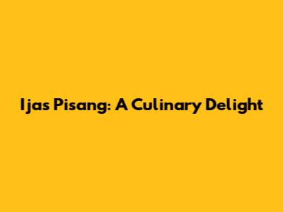 Ijas Pisang: A Culinary Delight
