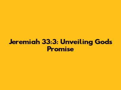 Jeremiah 33:3: Unveiling God's Promise