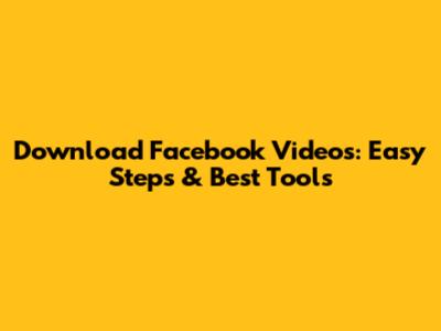 Download Facebook Videos: Easy Steps & Best Tools