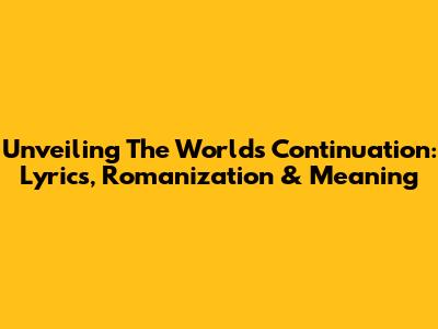 Unveiling 'The World's Continuation': Lyrics, Romanization & Meaning