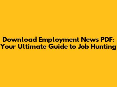 How to Effectively Use the Employment News PDF