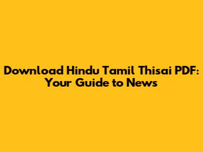 Where to Download Hindu Tamil Thisai PDF
