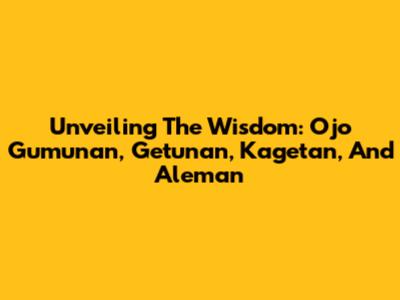 Unveiling The Wisdom: Ojo Gumunan, Getunan, Kagetan, And Aleman