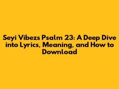 Hey music lovers! Are you searching for Seyi Vibez's Psalm 23 music download? You're in the right place! This article is your comprehensive guide to everything about this soul-stirring track. We'll explore the song's profound lyrics, the meaning behind them, and, of course, how you can get your hands on the MP3 download so you can vibe to it anytime, anywhere. So, buckle up, guys, as we embark on a journey into the heart of Seyi Vibez's musical masterpiece! We will look into the details of Seyi Vibez's track, breaking down its significance and how it has resonated with so many people. Also, we will explore the song's themes of faith, hope, and resilience, which have earned it a special place in the hearts of listeners worldwide. Let's dive in! This song is more than just a melody; it is a heartfelt expression of faith, trust, and the unwavering belief in a higher power. It's a testament to Seyi Vibez's ability to create music that connects with listeners on a spiritual level. For those of you eager to download the song, we'll provide a straightforward guide to help you get the MP3. Get ready to understand the artistry behind "Psalm 23" and how it continues to inspire people around the globe. This analysis will guide you through the lyrics, explaining the core message and the emotional impact it has on listeners. This song is a must-have in your playlist. Let's get started, shall we?