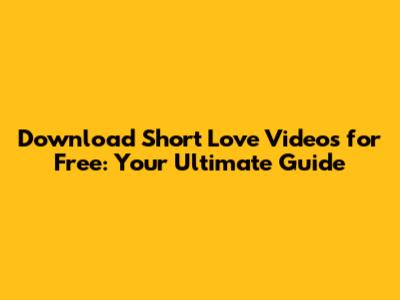 Hey everyone! Are you searching for those heart-melting short love videos to brighten up your day or share with someone special? Well, you've landed in the right place! We're diving deep into the world of free short love video downloads, covering everything you need to know. From where to find these gems to how to download them safely and effectively, we've got you covered. So, grab your popcorn (or maybe a box of chocolates!), and let's get started on this journey to discover the most adorable and romantic content available. Seriously, these short videos are perfect for sending to your crush, sharing with your significant other, or just enjoying a little dose of love and positivity. They're like tiny bursts of happiness!