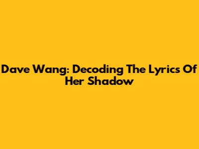 Dave Wang: Decoding The Lyrics Of Her Shadow
