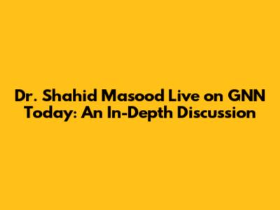 Dr. Shahid Masood Live on GNN Today: An In-Depth Discussion