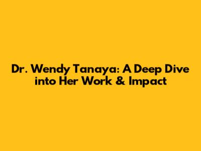 Hey guys! Ever heard of Dr. Wendy Tanaya? If not, you're in for a treat! She's an absolute rockstar in her field, and today, we're diving deep into her work, her impact, and everything that makes her such a respected figure. So, buckle up and let's get started!