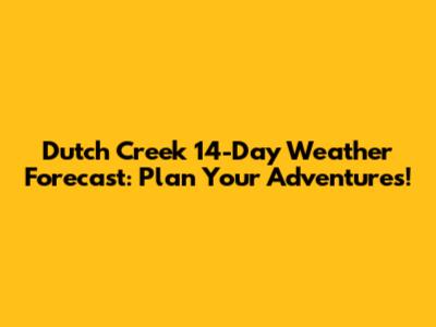 Hey everyone! Planning a trip to Dutch Creek or just curious about what the weather's got in store for the next couple of weeks? You've come to the right place, guys! We're diving deep into the Dutch Creek 14-day weather forecast to help you pack the right gear, schedule your outdoor activities, and generally stay ahead of Mother Nature. Whether you're thinking of hiking, fishing, or just enjoying the local scenery, knowing the forecast is key. So, let's break down what you can expect in the coming days and weeks for Dutch Creek, ensuring you're fully prepared for whatever the skies decide to do. We'll look at temperature trends, precipitation chances, and general conditions to give you the most comprehensive outlook possible. This is your ultimate guide to staying informed and making the most of your time in this beautiful area!