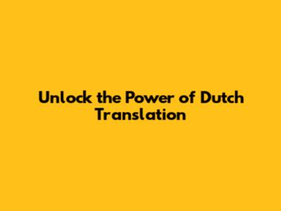 Unlock the Power of Dutch Translation