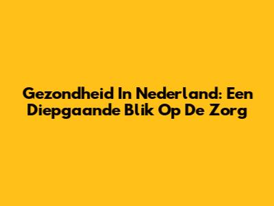 Gezondheid In Nederland: Een Diepgaande Blik Op De Zorg