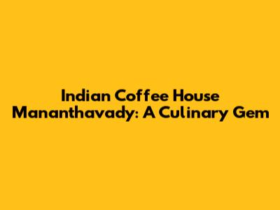 Indian Coffee House Mananthavady: A Culinary Gem