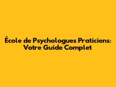 Qu'est-ce que l'École de Psychologues Praticiens? (What is the School of Practical Psychologists?)
