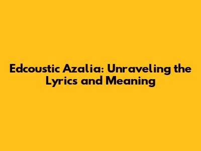 The Poetic Heart of "Azalia": A Full Lyrical Journey