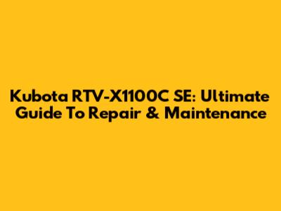 Kubota RTV-X1100C SE: Ultimate Guide To Repair & Maintenance