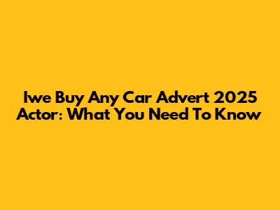 Iwe Buy Any Car Advert 2025 Actor: What You Need To Know