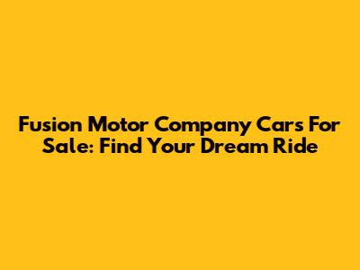 Fusion Motor Company Cars For Sale: Find Your Dream Ride