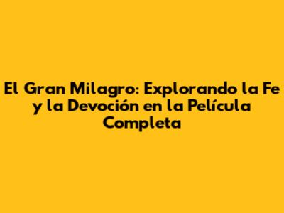 La película ha generado una comunidad de seguidores que se sienten inspirados por su mensaje y por sus personajes. La película ha sido objeto de estudio y análisis en escuelas y universidades. La película ha sido utilizada como herramienta para promover la fe y la espiritualidad. La película ha inspirado a muchas personas a buscar una conexión más profunda con lo divino y a vivir una vida llena de fe y esperanza. El Gran Milagro es una película que ha dejado una huella duradera en la cultura popular. La película es un testimonio del poder del cine para inspirar, emocionar y conectar a las personas. La película ha sido celebrada por su mensaje universal y por su capacidad para tocar el corazón de las personas.