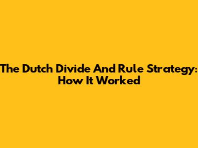 The Dutch Divide And Rule Strategy: How It Worked