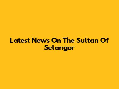 Latest News On The Sultan Of Selangor