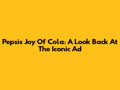 Pepsi's Joy Of Cola: A Look Back At The Iconic Ad