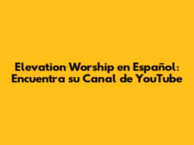 Hey guys! Are you looking for Elevation Worship in Spanish on YouTube? You've come to the right place! Elevation Worship has touched countless lives with its powerful and uplifting music. If you're a fan of their English tracks, you'll be thrilled to discover their Spanish renditions. This article will guide you on how to find their official Spanish YouTube channel and what kind of content you can expect. Let's dive in!