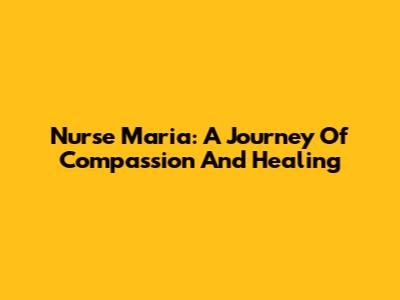 Nurse Maria: A Journey Of Compassion And Healing