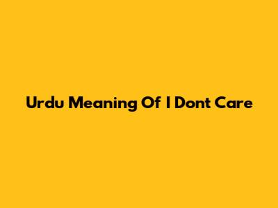 Urdu Meaning Of "I Don't Care"