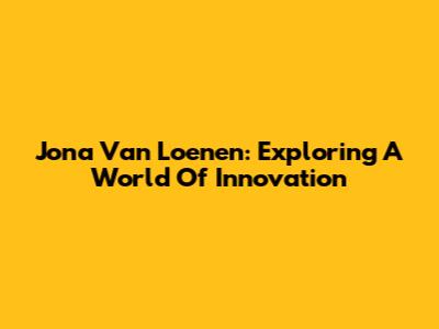 Jona Van Loenen: Exploring A World Of Innovation