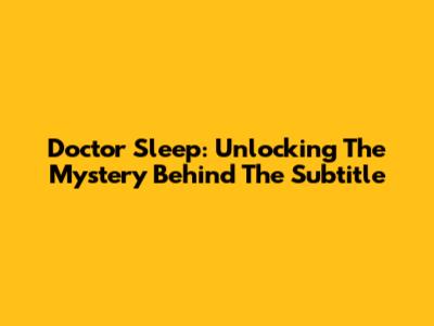 Doctor Sleep: Unlocking The Mystery Behind The Subtitle