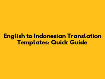 Hey guys! Ever found yourself needing to translate something from English to Indonesian pronto? Whether it's for work, school, or just keeping in touch with friends, having a solid translation template can save you a ton of time and effort. Let’s dive into how you can create and use these templates effectively. Trust me; it's easier than you think!