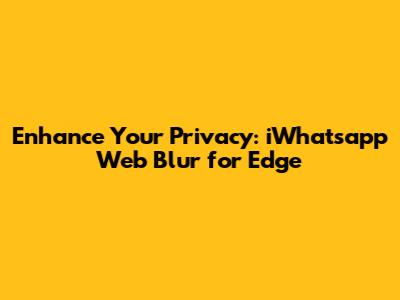 Hey guys, are you tired of prying eyes when you're using WhatsApp Web on your Edge browser? Do you want to keep your chats private and blur out sensitive information from people who might be lurking around? Well, you're in luck! There's a fantastic solution called the iWhatsapp Web Blur extension designed specifically for the Edge browser. This extension helps you to add a layer of privacy to your WhatsApp Web experience. In this article, we'll dive deep into what the iWhatsapp Web Blur extension is, how it works, why you should use it, and how to install and configure it on your Edge browser. Get ready to take control of your privacy and enjoy a more secure and private WhatsApp Web experience. Let's get started!