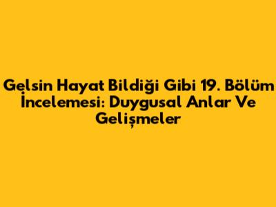 Gelsin Hayat Bildiği Gibi 19. Bölüm İncelemesi: Duygusal Anlar Ve Gelişmeler