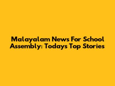 Malayalam News For School Assembly: Today's Top Stories