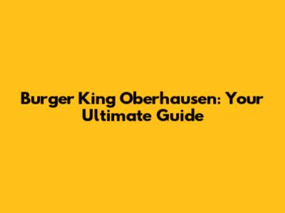 Burger King Oberhausen: Your Ultimate Guide