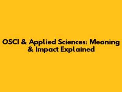 OSCI & Applied Sciences: Meaning & Impact Explained