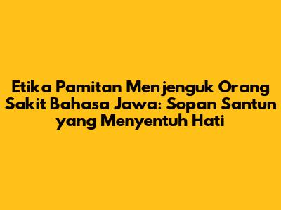 Guys, pernah nggak sih kalian dihadapkan sama situasi di mana orang terdekat atau teman kita lagi sakit? Pasti rasanya pengen banget jenguk kan? Nah, dalam budaya Jawa, pamitan menjenguk orang sakit bahasa Jawa itu bukan sekadar omong kosong, lho. Ini adalah bentuk penghormatan dan perhatian yang mendalam, guys. Bayangin aja, pas kita mau pergi nengok orang yang lagi nggak enak badan, kita nggak cuma asal nyelonong, tapi ada tata krama yang perlu diperhatikan. Ini bukan soal kaku-kakuan, tapi lebih ke menghargai perasaan orang lain, terutama si sakit dan keluarganya. Sikap sopan santun ini, meskipun terdengar sederhana, punya kekuatan besar untuk memberikan kenyamanan dan dukungan moral. Dalam bahasa Jawa, ada ungkapan-ungkapan khusus yang sering dipakai saat kita mau pamitan untuk menjenguk orang sakit. Ungkapan-ungkapan ini biasanya disampaikan dengan nada yang lembut dan penuh hormat. Tujuannya apa sih? Biar nggak menyinggung, biar kedatangan kita itu benar-benar disambut baik dan dirasakan sebagai bentuk kepedulian yang tulus. Jadi, kalau kamu mau jenguk orang sakit, penting banget buat tahu cara pamitan yang benar dalam bahasa Jawa. Ini bukan cuma soal bahasa, tapi juga soal sikap dan niat baik yang kita bawa. Yuk, kita bedah lebih dalam gimana sih etika pamitan menjenguk orang sakit dalam bahasa Jawa ini biar kamu makin jago dan makin disayang orang. Dijamin, orang yang kamu jenguk bakal merasa lebih hangat dan tersentuh hatinya.