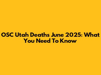 OSC Utah Deaths June 2025: What You Need To Know