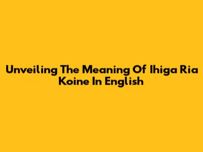 Unveiling The Meaning Of Ihiga Ria Koine In English