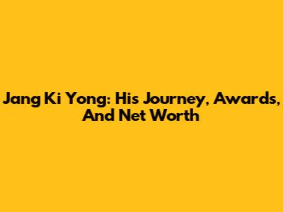 Jang Ki Yong: His Journey, Awards, And Net Worth