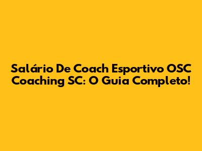 Salário De Coach Esportivo OSC Coaching SC: O Guia Completo!