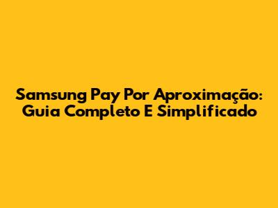 Samsung Pay Por Aproximação: Guia Completo E Simplificado