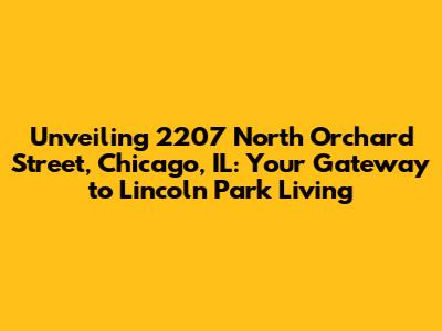 Unveiling 2207 North Orchard Street, Chicago, IL: Your Gateway to Lincoln Park Living