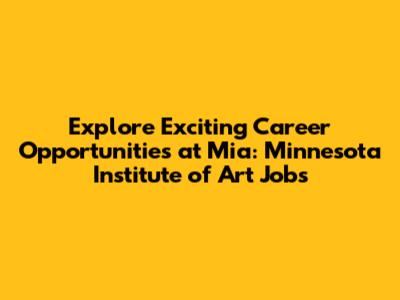 Hey everyone! Are you passionate about art and looking for a fulfilling career? Look no further! The Minnesota Institute of Art, often known as Mia, is a fantastic place to explore your artistic talents and career goals. Mia, a renowned institution, offers a wide range of Minnesota Institute of Art jobs that cater to various skill sets and interests. Whether you're a seasoned art professional or a fresh graduate eager to dive into the world of art, Mia has something for you. In this article, we'll dive deep into the exciting Minnesota Institute of Art jobs available, the benefits of working at Mia, and how you can snag your dream job.