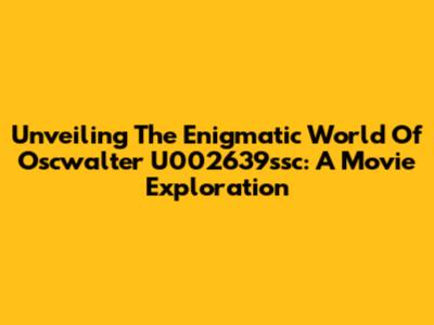 Unveiling The Enigmatic World Of Oscwalter U002639ssc: A Movie Exploration