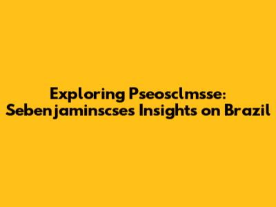 Let's dive into the world of Pseosclmsse and explore Sebenjaminscse's perspectives, particularly focusing on Brazil. This article aims to unpack the key concepts and insights that Sebenjaminscse brings to the table, offering a comprehensive overview that's both informative and engaging. So, buckle up, guys, because we're about to embark on a fascinating journey!