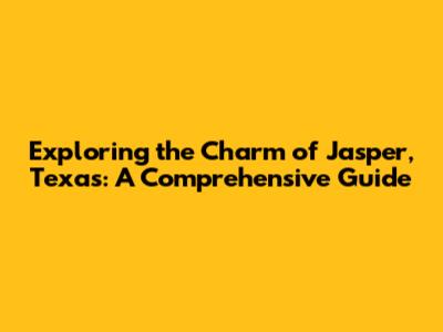 Hey everyone! Today, we're diving headfirst into the heart of East Texas to explore the amazing town of Jasper, Texas. This place is packed with history, natural beauty, and a whole lot of Southern charm. Whether you're a local or just passing through, there's always something new to discover in Jasper. So, buckle up, and let's get started on this awesome adventure! We'll cover everything from the best spots to eat and sleep to the must-see attractions and the rich history that makes Jasper so special. Ready to see what this Texas gem has to offer? Let's go!
